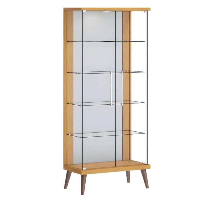 Cristaleira Tiffany 2 Portas Mdf 76cm com Led Nature; Freijó; OffWhit; Branco Acetinado