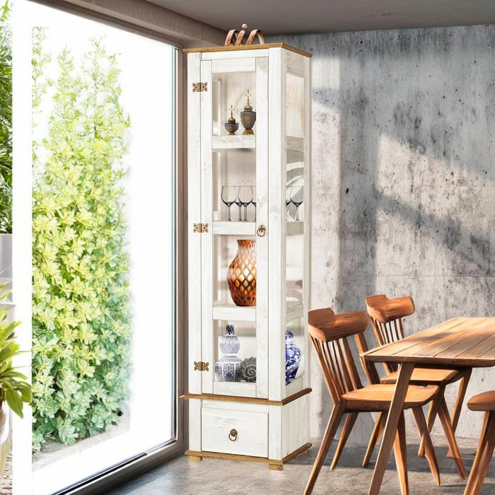 Madeira maciça em Pinus: Material proveniente de reflorestamento, assegurando durabilidade e sustentabilidade.01 porta: Oferece acesso fácil e protegido aos itens armazenados.01 gaveta com corrediças de madeira: Espaço adicional de armazenamento, prático e organizado.Vidros de 3mm: Perfeitos para expor taças, copos e peças favoritas, combinando estética e funcionalidade.Vidros laterais: Proporcionam uma visão completa dos itens internos, valorizando a exposição.Dobradiças e puxadores mexicanos metálicos: Adicionam um toque artesanal e autêntico ao móvel.04 nichos: Facilita a organização eficiente dos objetos.Acabamento em pintura UV com brilho semi fosco: Proporciona proteção duradoura e um visual sofisticado.Design rústico: Ideal para trazer personalidade e elegância ao ambiente.Dimensões do Produto: Largura 47 cm; Profundidade 36 cm; Altura 182 cm.Itens Inclusos: 1 cristaleira torreComplexidade da montagem: Média, pode ser montado por mais de uma pessoa e/ou necessite de maior conhecimento para montagem.Recomendações de uso, manutenção e limpeza: Limpar com flanela ou pano macio seco, não utilizar produtos abrasivos, desengordurantes, álcool ou solvente. Não expor o produto diretamente a luz solar e à umidadeGarantia: 3 mesesOBS: Foto meramente ilustrativa, objetos, utensílios e decoração não fazem parte do produto.