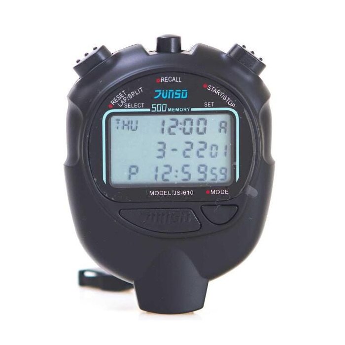 Cronometro Digital AX Esportes® com memória para 500 Voltas possui tela de LCD com 3 linhas de informação.