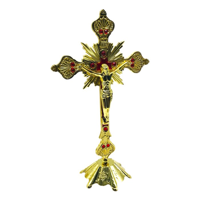 Crucifixo Cruz de Mesa Elegance Metal Dourado 30 Cm Dourado