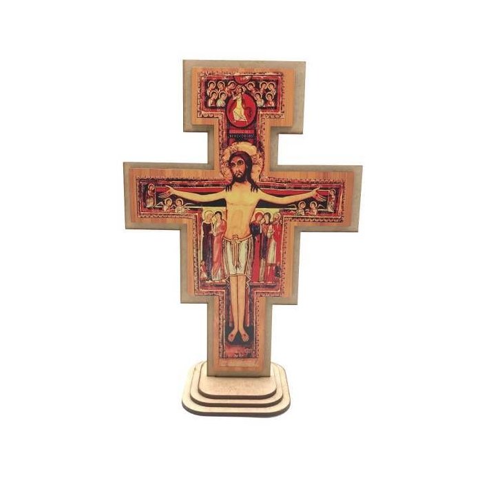 Crucifixo Cruz São Damião São Francisco de Mesa 20 cm