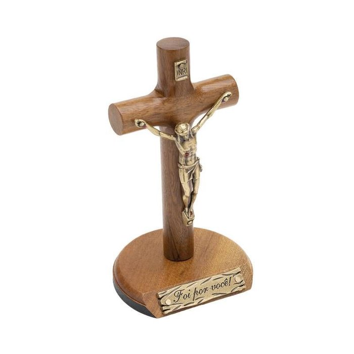 Crucifixo de Madeira Cilíndrico 12cm - "foi por Você!" Dom Sagrado Ouro Velho