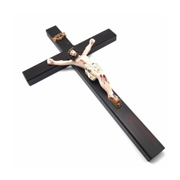 Crucifixo Parede Madeira Cristo em Resina Grande 40 cm