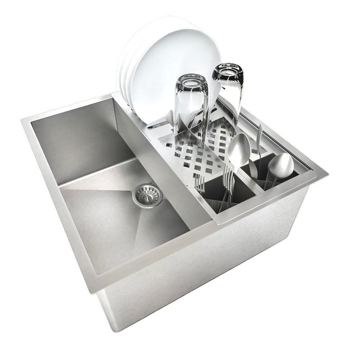 O modelo apresenta uma cuba espaçosa e funcional, o cesto escorredor 3 módulos vai facilitar o dia a dia com 01 módulo para pratos (total para 6 pratos), 01 módulo para copos (total para 6 copos), 01 módulo com 05 recipientes para talheres e utensílios e 01 cesto funcional para lavagem de frutas, legumes e verduras.