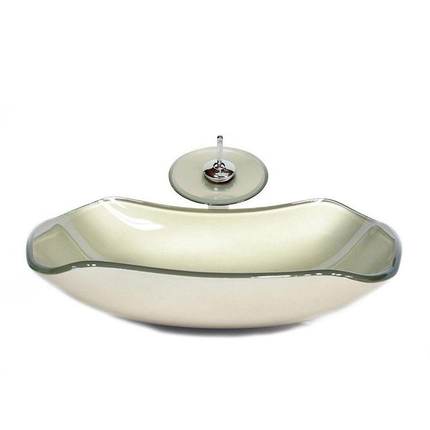 Cuba De Vidro Abaulada 51cm Champanhe + Valvula + Torneira Cascata