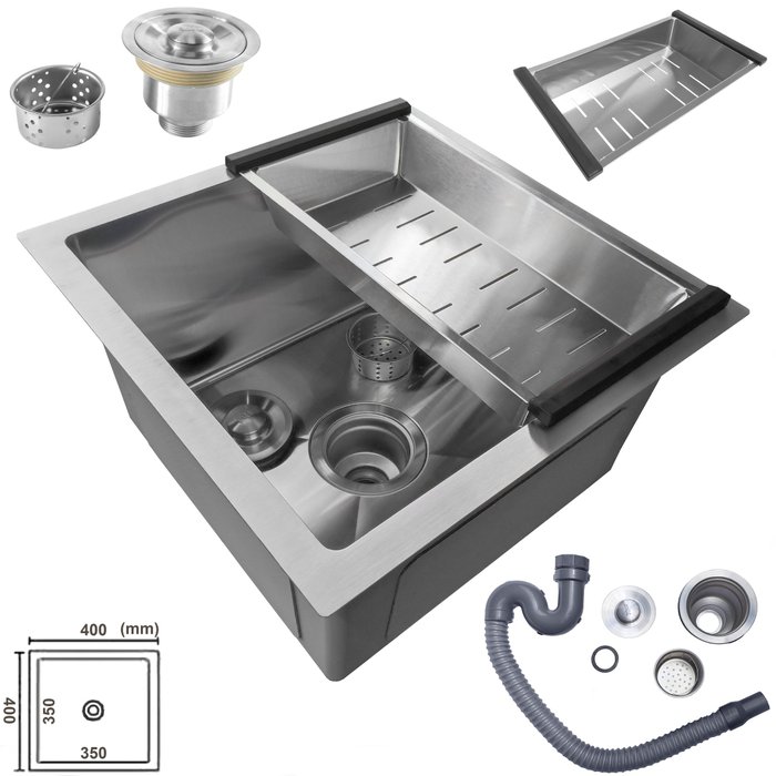 Cuba Aço Inox 304 Malta 40x40 Cm com Válvula, Tubo, Sifão e Escorredor em Inox