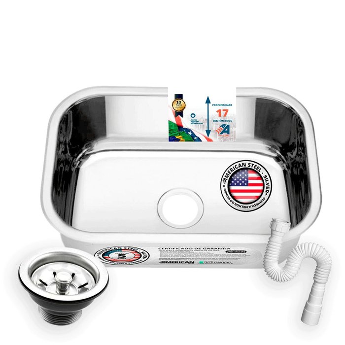 Cuba Aço Inox American Steel N°1 47x30x17 + Sifão + Válvula