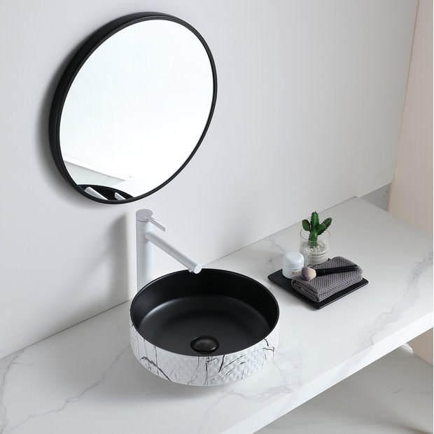 Cuba Apoio Evier Banheiro Black and White Marble 37X13