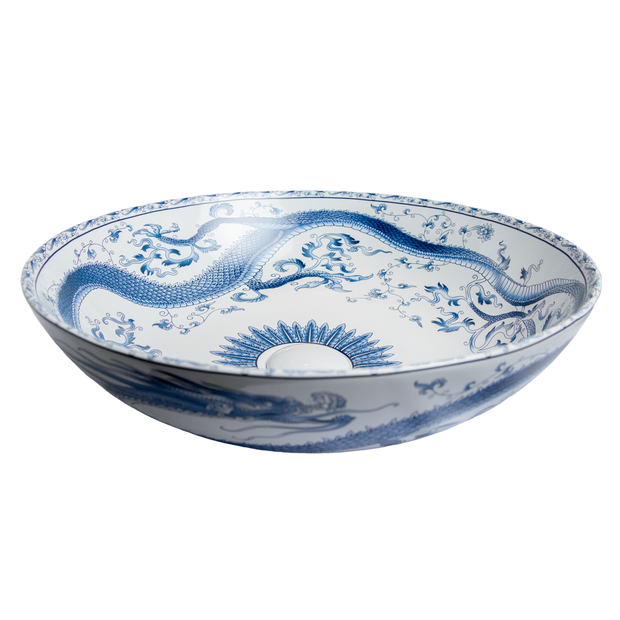 Cuba Apoio Evier Dragao Chines Azul e Branca Chinise Dragon Branco e Azul