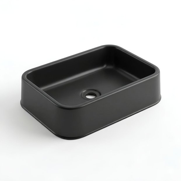 Cuba de apoio retangular em plástico de alta resistência para lavabos e banheiros.