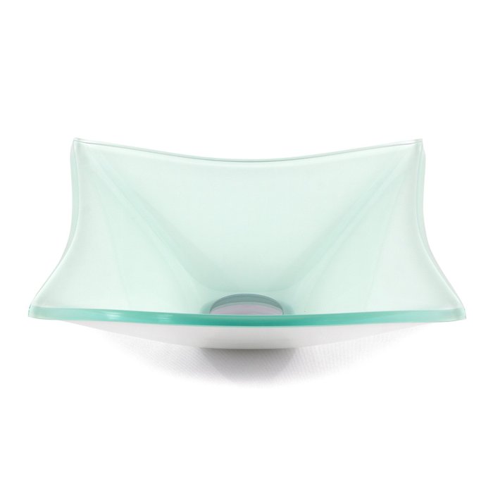 Cuba Banheiro Lavabo Vidro Quadrada RT 34 Cm + Válvula Click:Branco Branco