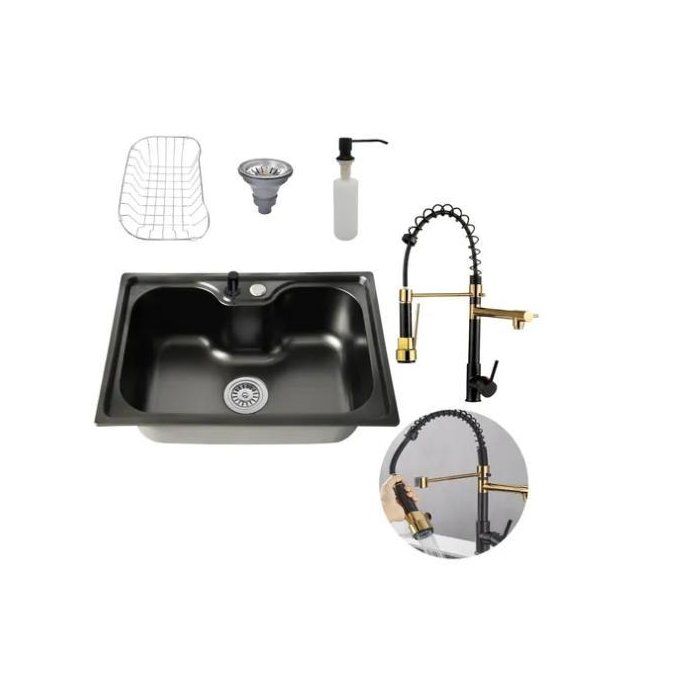 | Nome | Cuba cozinha gourmet aço inox luxo preto + torneira flexível |