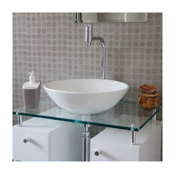 Cuba de apoio para lavatório modelo Bolonha, ideal para banheiros com bancadas e torneiras de Bica alta, uma tendência em alta ultimamente. Toda em cerâmica com seu design redondo combina com todos os modelos de vasos e bacias ovais ou arredondadas. Possui abertura para válvula de escoamento com um diâmetro de 4,5 cm.