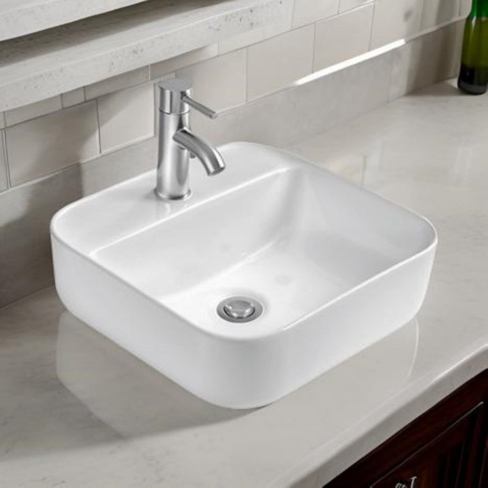 Sua pintura é esmaltada na cor branco brilhante. Este modelo apresenta formato quadrado, se encaixando facilmente em vários modelos de bancada.