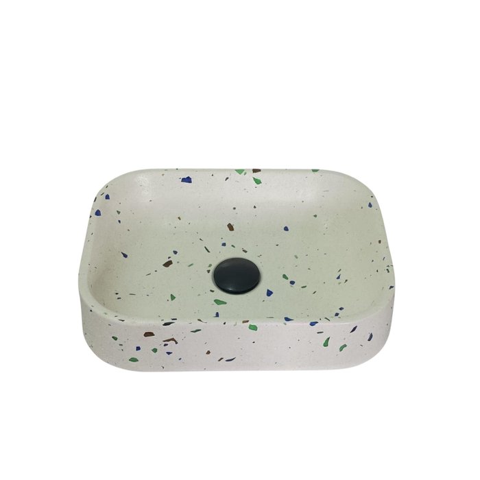 Transforme seu ambiente com exclusividade ! Nossa cuba artesanal é feita em concreto de alta performance (UHPC), garantindo resistência e acabamento impecável , .Com design retangular , em tom branco e no efeito granilite , ela traz um toque artístico através dos caco de vidro coloridos incorporados manualmente .Cada peça é única ,feira com cuidado e atenção aos detalhes,perfeita para quem busca um elemento funcional e ao mesmo tempo decorativo para banheiros ou lavabos com personalidade.