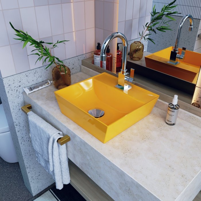 Cuba de Apoio para Banheiro Aq33 Angular Volcano Amarelo