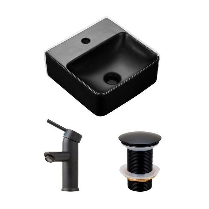 Cuba de apoio para banheiro em porcelana Ágata com Torneira monocomando xingu e válvula click Preto