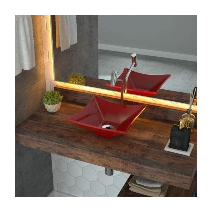 Cuba de Apoio para Banheiro L30 Lux Quadrada Folha Compace Vermelho