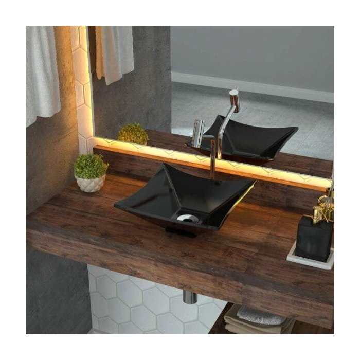 Cuba de Apoio para Banheiro L30 Lux Quadrada Folha Compace Preto
