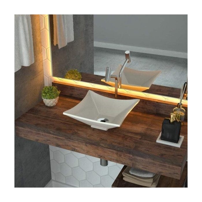 Cuba de Apoio para Banheiro L30 Lux Quadrada Folha Compace Bege