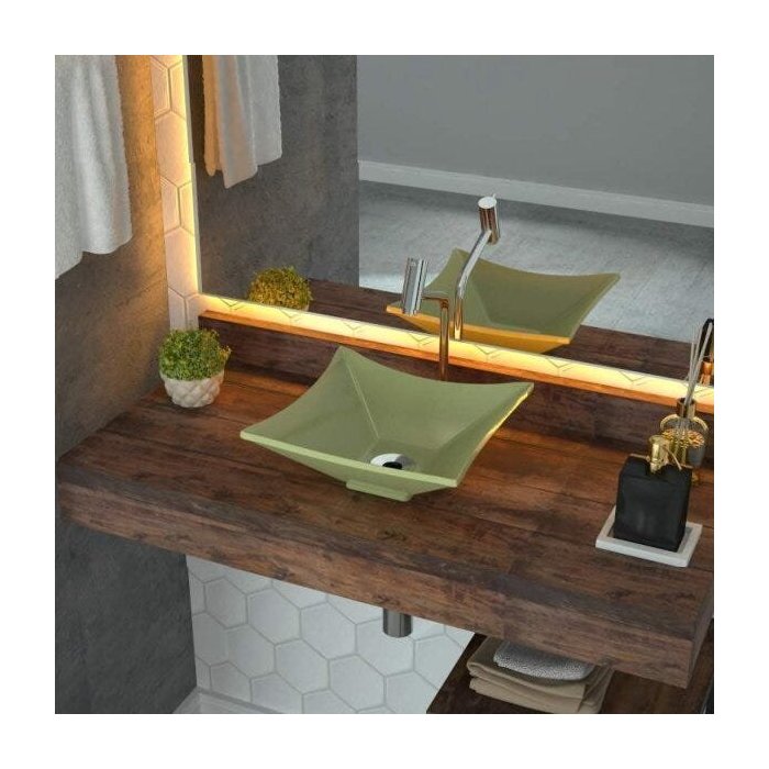 Cuba de Apoio para Banheiro L30 Lux Quadrada Folha Compace Verde Água