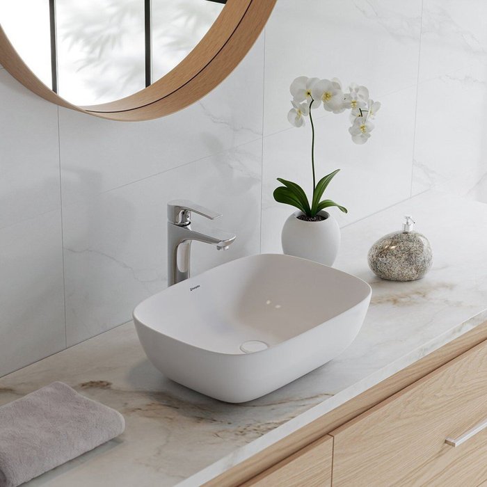 A Cuba de Apoio Quadrada 46cm MP-3102 e? ideal para quem busca sofisticac?a?o e funcionalidade em banheiros de uso dia?rio ou lavabos modernos. Seu design elegante combina com bancadas me?dias e grandes, proporcionando um visual contempora?neo.