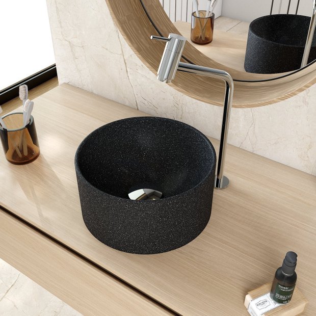 A cuba BL30 tem seu design redondo com bordas finas e um excelente escoamento de água. Lapimat é um material especialmente desenvolvido para a produção de cubas e lavatórios de banheiro a partir de uma combinação robusta de resina poliéster, cargas minerais selecionadas e aditivos. Sua excelente composição possui uma dupla camada de pintura poliéster PU de alta performance, complementada por uma de verniz protetor, resultando em uma superfície resistente e um acabamento superior com alto brilho nas cores HD e toque acetinado nas cores Matte Fosca. Com um processo produtivo a partir de formas e moldes usinados, suas peças possuem excelentes propriedades mecânicas, resistência e fácil manutenção. Lapimat, cubas com design versátil e moderno feitas para durar!