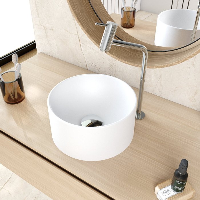 A cuba BL30 tem seu design redondo com bordas finas e um excelente escoamento de água. Lapimat é um material especialmente desenvolvido para a produção de cubas e lavatórios de banheiro a partir de uma combinação robusta de resina poliéster, cargas minerais selecionadas e aditivos. Sua excelente composição possui uma dupla camada de pintura poliéster PU de alta performance, complementada por uma de verniz protetor, resultando em uma superfície resistente e um acabamento superior com alto brilho nas cores HD e toque acetinado nas cores Matte Fosca. Com um processo produtivo a partir de formas e moldes usinados, suas peças possuem excelentes propriedades mecânicas, resistência e fácil manutenção. Lapimat, cubas com design versátil e moderno feitas para durar!