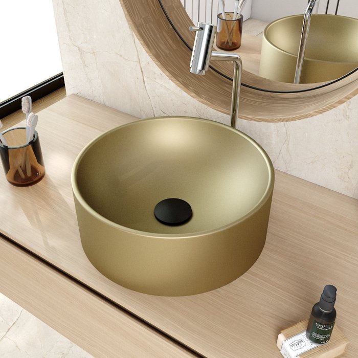 Cuba de Apoio Redonda Bl34 34x34cm Lapimat Ouro Velho Matte Fosca
