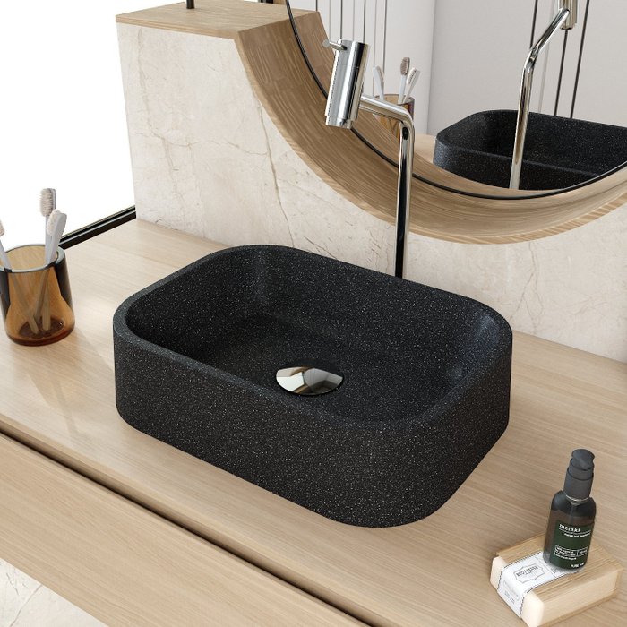Cuba de Apoio Retangular Br37 37,8x28cm Lapimat Preto Granit Matte