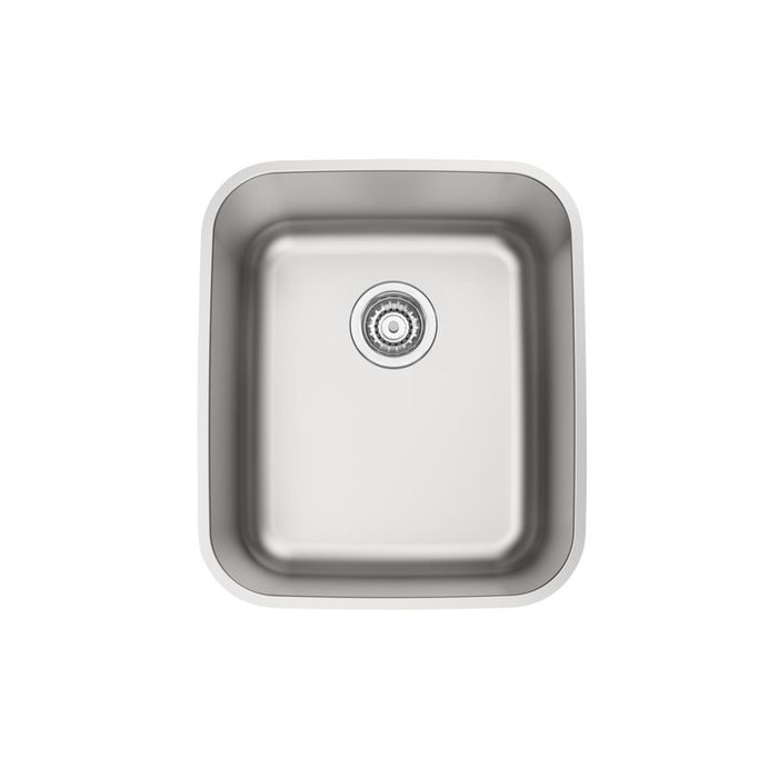 Aço Inox AISI 304Acabamento acetinado0,8 mm de espessuraAcompanha válvula de Ø 4 1/2".Profundidade da cuba 185 mm.