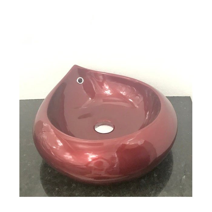 Dimensões: 46,5 x 19,5cm material: cerâmica. cuba de louça de sobrepor gota na cor vermelho vinho. Não inclui válvula