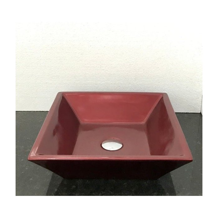 Dimensões: 41 x 41 x 12cm material: cerâmica. cuba de louça de sobrepor quadrada na cor vermelho vinho. Não inclui válvula