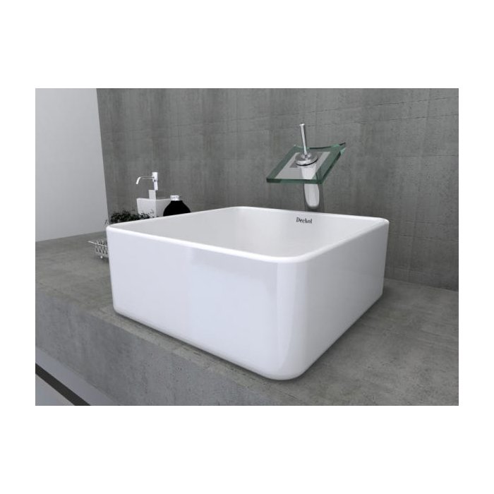 Cuba de Louça Quadrada, válvula, Sifao, Torneira Cascata Quadrada Branco