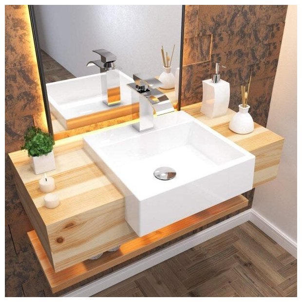 A cuba de semi-encaixe XQ395 tem seu design quadrado e um excelente escoamento de água, é fabricada em mármore sintético com acabamento em gel coat, material bem semelhante a louça, muito resistente e mais econômico..