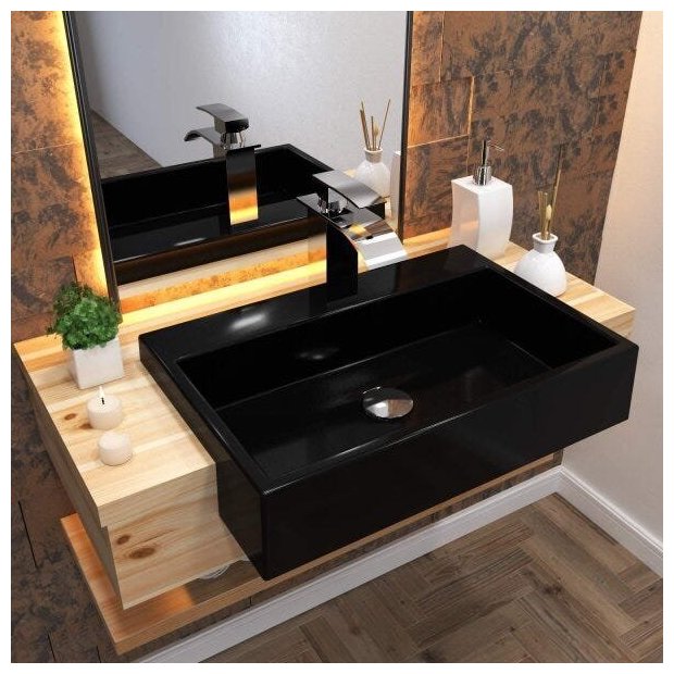 Cuba de Semi Encaixe para Banheiro Xrt550 Retangular Compace Preto
