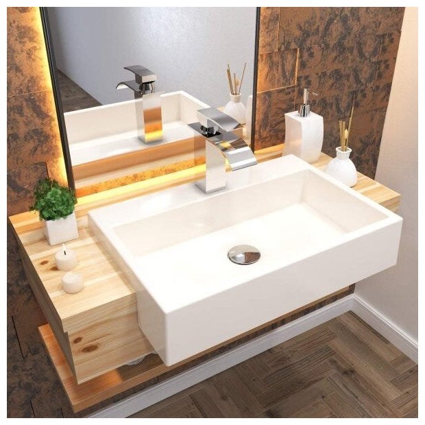 A cuba de semi-encaixe XRT550 tem seu design retangular e um excelente escoamento de água, é fabricada em mármore sintético com acabamento em Hard Lacca PU, material bem semelhante a louça, muito resistente e mais econômico..