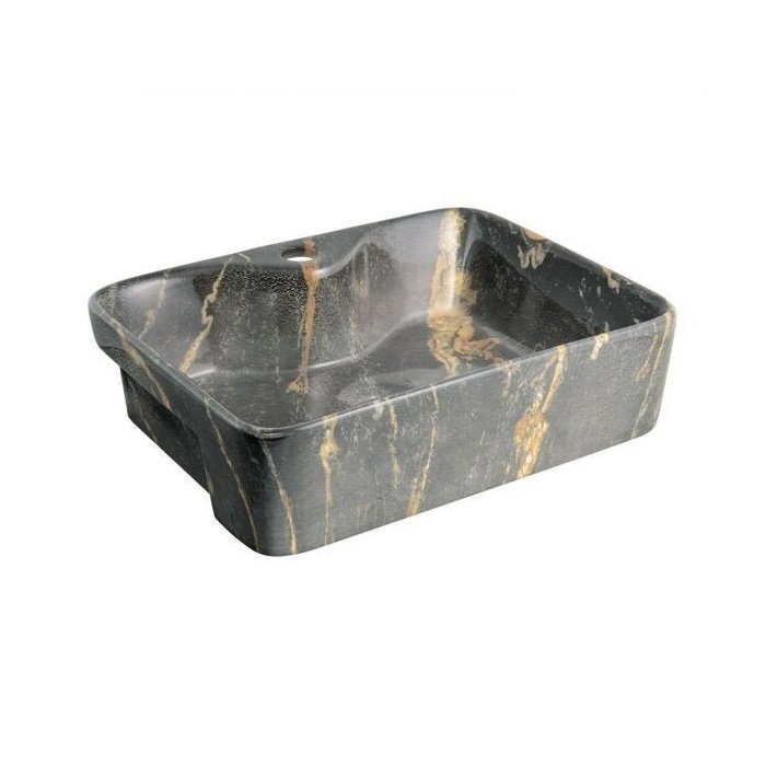 Cuba de Semi Encaixe Retangular 48cm Louça Sicília Bela Metais Mámore Nero Gold