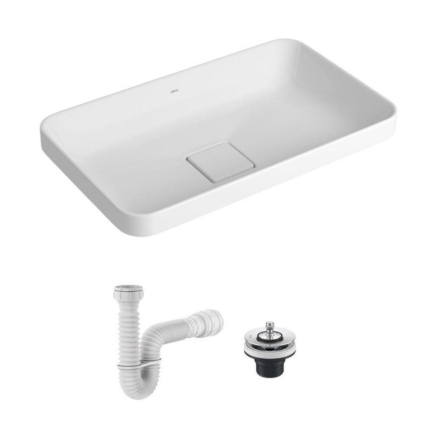 Cuba de Sobrepor Deca Slim 50x30 Retangular Branca + Válvula + Sifão -