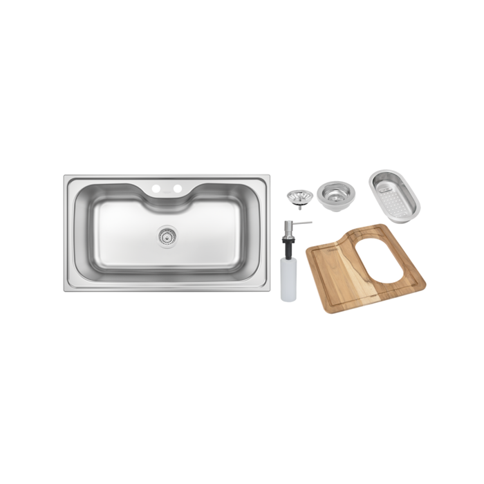 Cuba de Sobrepor Morgana Maxi 86x50 cm em Aço Inox com Acabamento Acetinado com Válvula Dosador de Sabão, Tábua e Cesto Coador Tramontina
