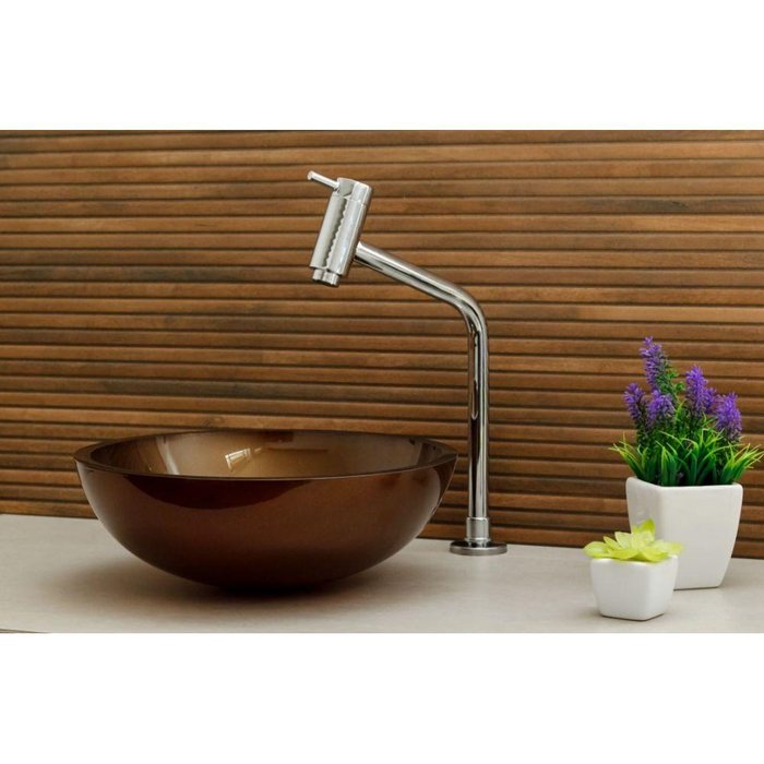 Cuba de Vidro 30 cm Marrom + Torneira Link + Válvula