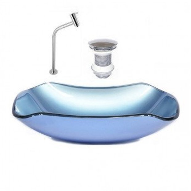 Cuba de Vidro Abaulada 45cm com Válvula e Torneira Azul