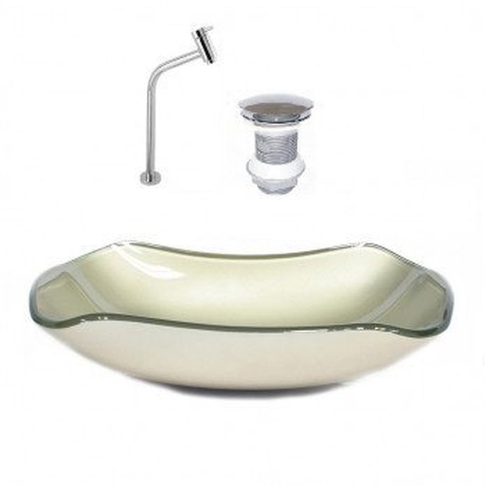 Cuba de Vidro Abaulada 45cm com Válvula e Torneira Champanhe