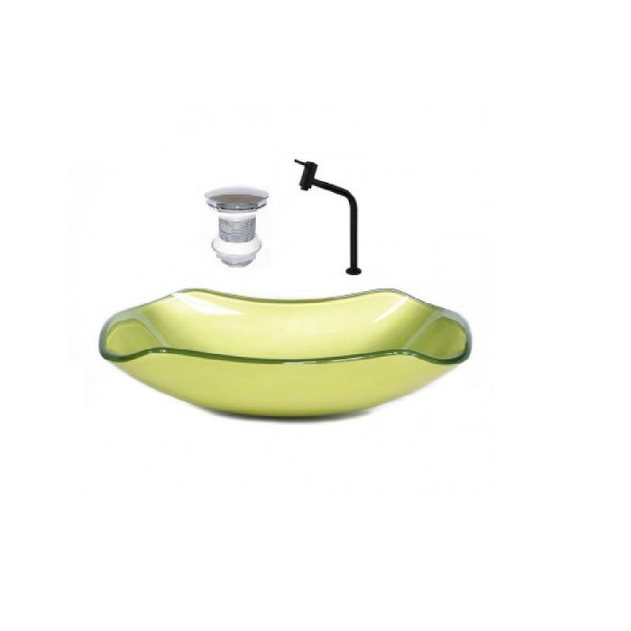 Cuba de Vidro Abaulada 45cm com Válvula e Torneira Verde Oliva