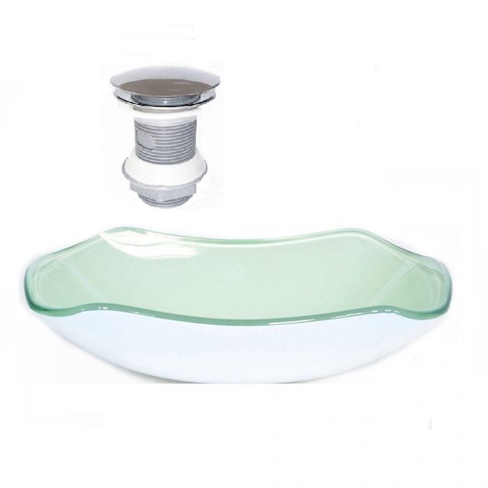 Cuba de Vidro Abaulada 51cm Branca + Valvula Click
