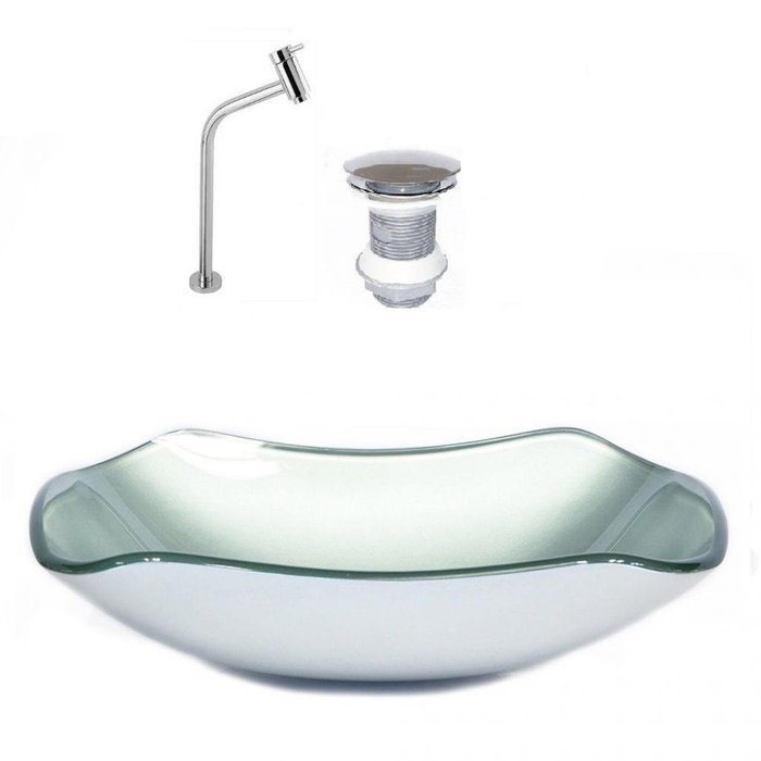 Cuba de Vidro Abaulada 51cm Prata + Valvula + Torneira Prata
