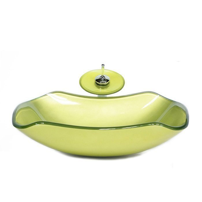 Cuba de Vidro Abaulada 51cm + Válvula + Torneira Cascata Verde