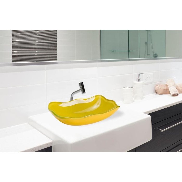 Cuba de vidro abaulada amarela ,válvula, sifao,torneira 45