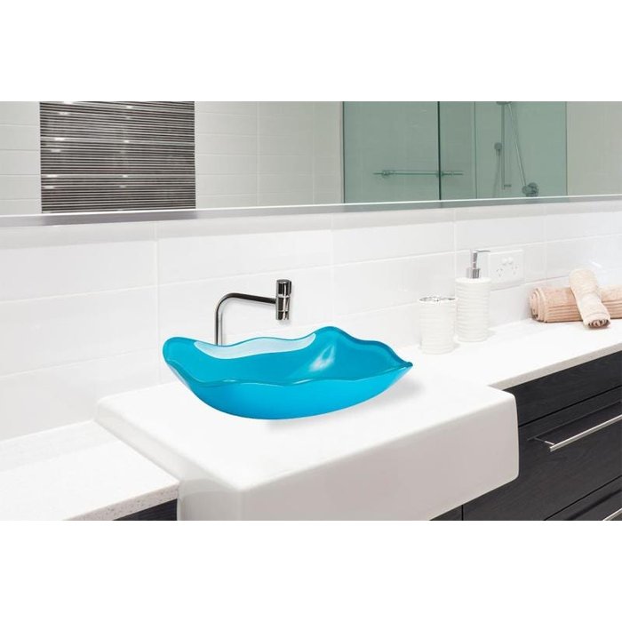 Cuba de vidro abaulada azul celeste,válvula,sifao,torneira90