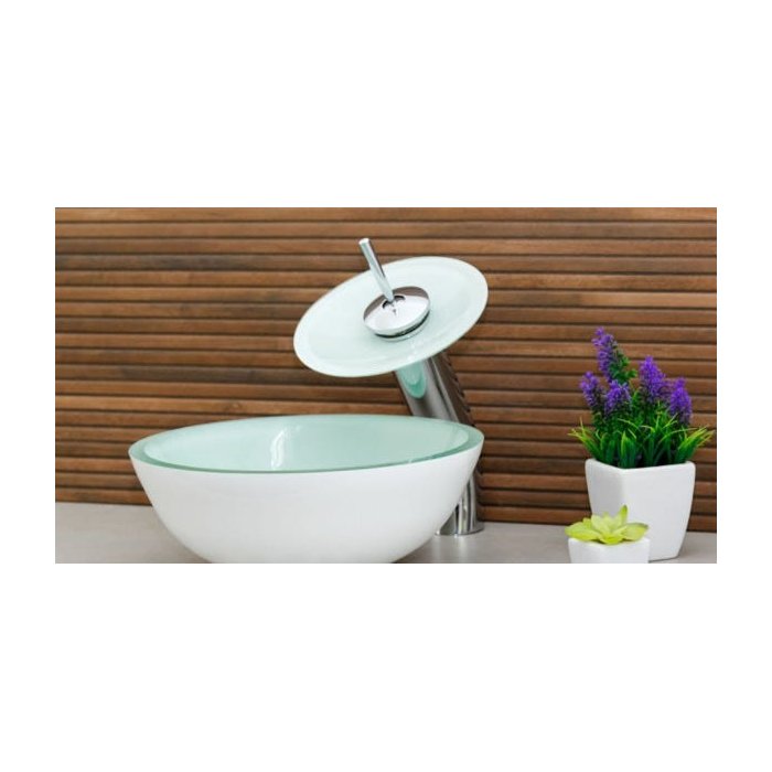 Cuba de vidro branca redonda +válvula +torneira +sifão